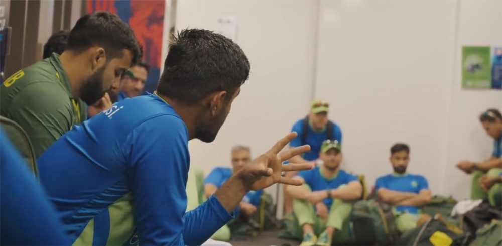 آئی سی سی ٹی20 ورلڈ کپ میں بنگلادیش کو شکست دینے اور سیمی فائنل تک پہنچنے کے بعد ڈریسنگ میں بابراعظم نے کھلاڑیوں سے گفتگو کی۔