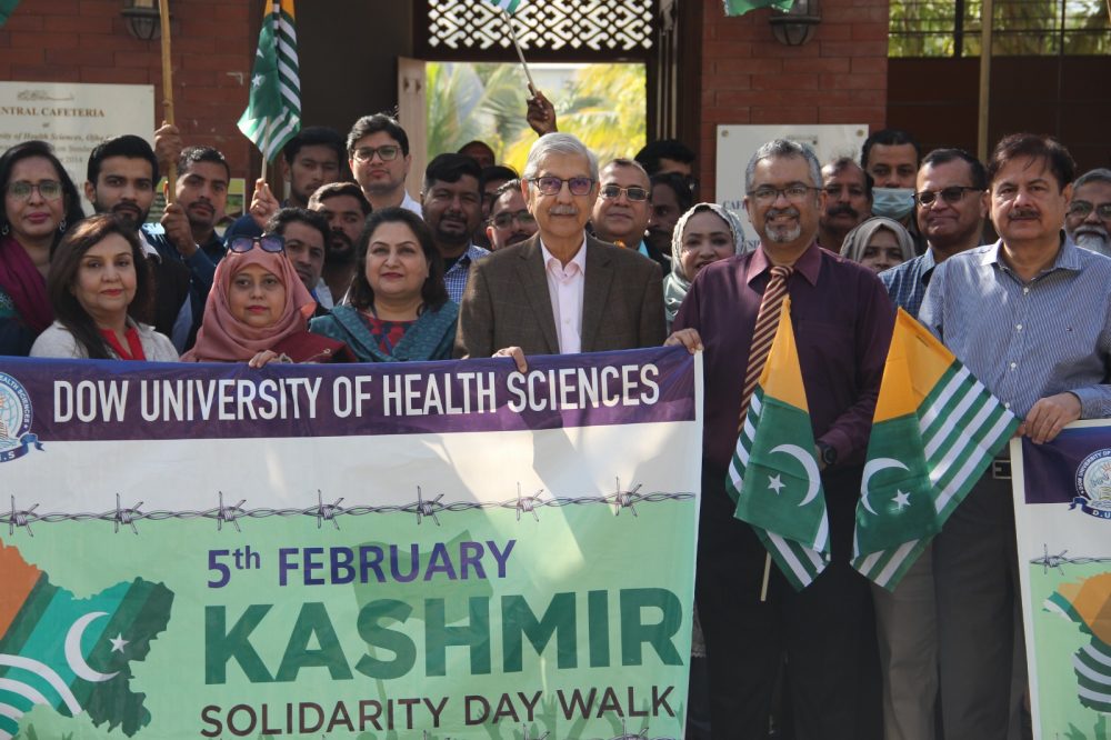 ڈاو یونیورسٹی میں یوم یکجہتی کشمیرکے موقع پرواک اورریلی نکالی گئی