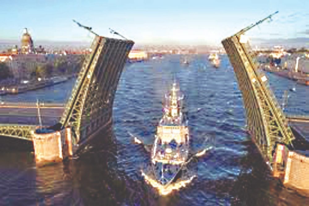 اسی طرح کچھ پلوں کو رنگوں سے یاد کیا جاتا ہے جیسے ریڈ، گرین۔مگر آج ہمارا اصل موضوع دریائے نیوا کے جلترنگ بجاتے پانیوں پر رنگ و نور کی برسات کے دوران منعقد ہوتی وہ انوکھی تقریب ہے جو باہر سے آنے والوں کے لیے بے پناہ کشش تو رکھتی ہی ہے،خود روسی اس کے ہر ہر لمحے سے لطف اندوز ہوتے ہیں اور اس کا اہتمام روزانہ اسی طرح کیا جاتا ہے جیسے کہ یہ تقریب پہلی بار منعقد ہو رہی ہو۔سیاحوں کے دلپسند نظاروں پر مشتمل یہ تقریب دریائے نیوا پر 22 پلوں کا کھلنا اور بند ہونا ہے جو یومیہ بنیادوں پر جشن کا سماں پیدا کرتی ہے۔یہ تقریب ہے کیا؟نیوی گیشن یعنی جہاز رانی کے موسم کے دوران اپریل سے نومبر تک ہر نصف شب کے بعد مقررہ وقت پر دریائے نیوا پر نصب لوہے کے ان بائیس پلوں کو کھول کر 90 ڈگری کے زاویے پر اٹھا دیا جاتا ہے۔ اس دوران ان پر چلنے والی ہر قسم کی ٹریفک دریا کے آرپار رک جاتی ہے۔جب کہ پلوں کے نیچے سے ہیوی بحری ٹریفک کو گزرنے کا موقع دیا جاتا ہے۔،بالکل اسی طرح جیسے بڑے شہروں کی مصروف شاہراہوں پر ہیوی ٹریفک کے لیے مخصوص اوقات مقرر ہوتے ہیں۔پلوں کو اوپر اٹھا کر کارگو شپس کو بالٹک سی میں داخلے اور اخراج کے لئے گزرنے کا موقع دیا جاتا ہے۔
