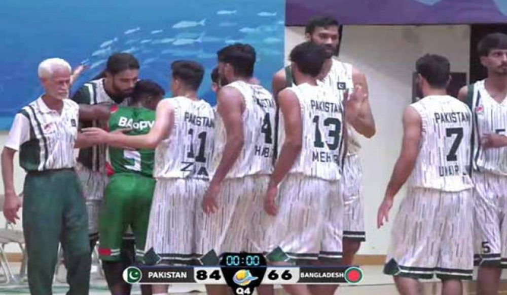 زین الحسن خان، عمیر جان نے 19،19، عبد الوہاب نے 16 پوائنٹس سکور کیے ، پاکستان کی ایونٹ میں مسلسل تیسری فتح ہے،لیگ راونڈ میں گرین شرٹس نے میزبان مالدیب، بھوٹان کو بھی شکست دی تھی، پانچ ملکی ٹورنامنٹ کے سیمی فائنلز 20جون کو کھیلے جائینگے ، قومی باسکٹ بال ٹیم 7سال بعد انٹرنیشنل ایونٹ میں حصہ لے رہی ہے۔