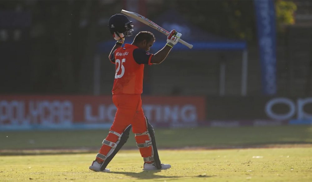 نیدرلینڈز کے بلے باز لوگن وین بیک سپر اوور میں شاندار اننگز کھلینے پر پیلئر آف دی میچ قرار پائے۔