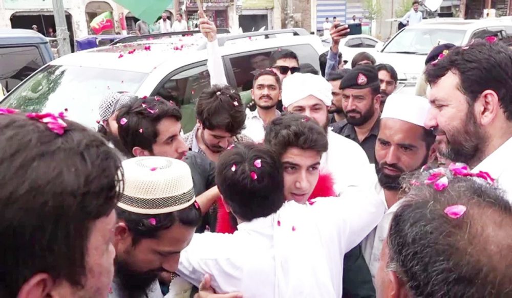 علاقہ مکینوں نے حمزہ خان پر پھول نچھاور کیے اور ڈھول کی تھاپ پر رقص کرتے رہے۔