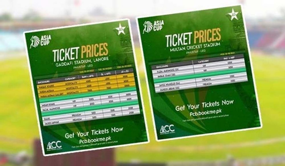 ابتدائی طورپر صرف پاکستان میں کھیلے جانے والے میچز کے ٹکٹ دسیتاب ہیں، پاکستان میں ایشیا کپ کے 4 میچز کھیلے جائیں گے، افتتاحی میچ 30 اگست کو ملتان سٹیڈیم میں پاکستان اور نیپال کے درمیان کھیلا جائے گا۔
