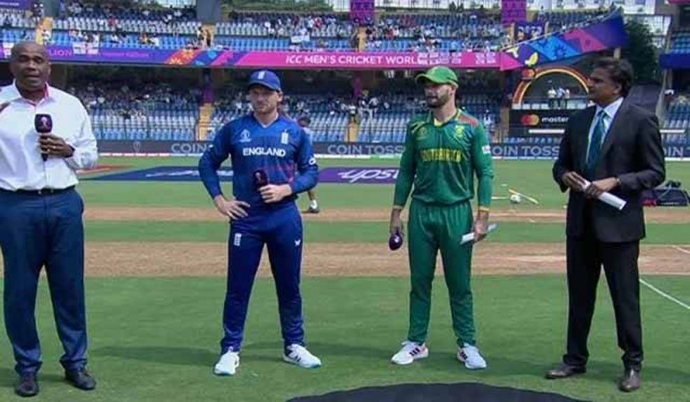 بھارت(اُمت نیوز)بھارت میں جاری آئی سی سی ورلڈ کپ کے 20 ویں مقابلے میں دفاعی چیمپئن انگلینڈ نے جنوبی افریقہ کے خلاف ٹاس جیت کر گیند بازی کا فیصلہ کیا ہے۔