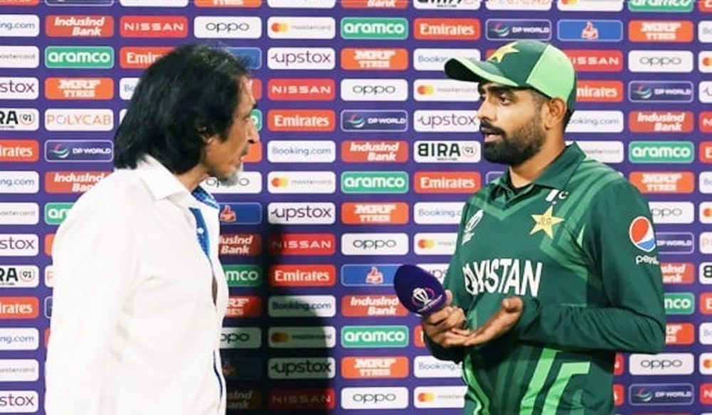 مقامی ٹی وی چینل کو دیئے گئے انٹرویو میں سابق چیئرمین پی سی بی اور کمنٹیٹر رمیز راجا نے انکشاف کیا کہ افغانستان کے خلاف شکست کے بعد پریزنٹیشن سے پہلے بابراعظم سے آف ائیر پوچھا تھا کہ کیوں 42ویں اور 46ویں اوورز میں اسپنرز کے استعمال کرنے کا فیصلہ کیوں کیا اور مشورہ دیا کہ ان اوورز میں حسن علی کی گیند ریورس کررہی تھی اسے کیوں بالنگ نہیں کروائی؟۔