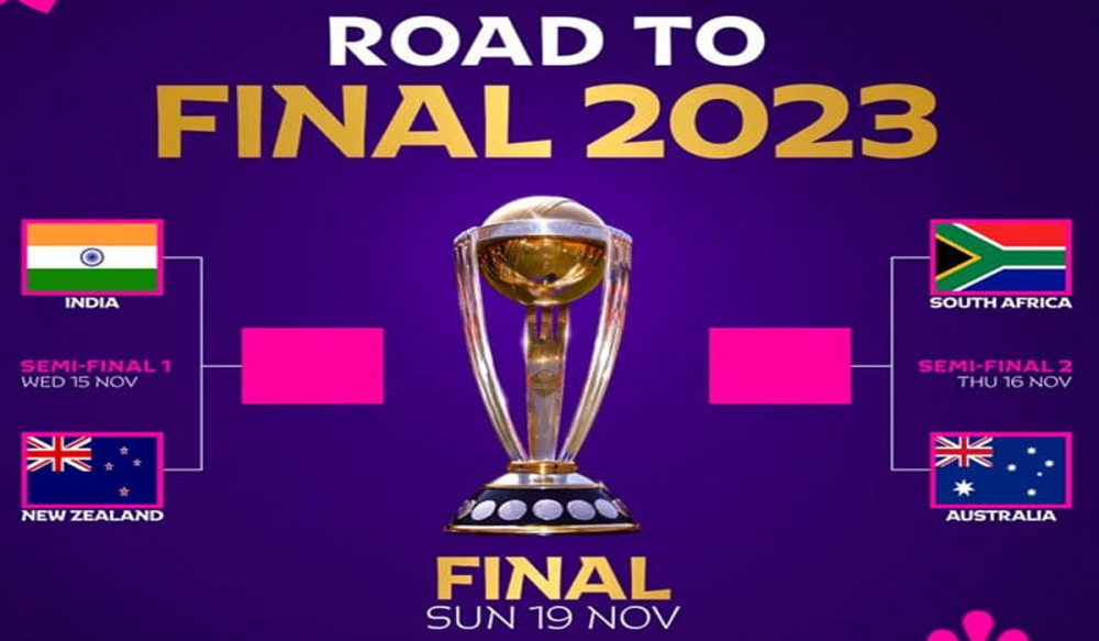 ورلڈکپ کا پہلا سیمی فائنل بدھ 15 نومبر کو انڈیا اور نیوزی لینڈ کے درمیان جبکہ دوسرا سیمی فائنل 16 نومبر کو جنوبی افریقا اور آسٹریلیا کے درمیان ہوگا۔ فائنل 19 نومبر کو کھیلا جائے گا۔ تینوں میچز پاکستانی وقت کے مطابق سہ پہر 1:30 پر شروع ہونگے۔