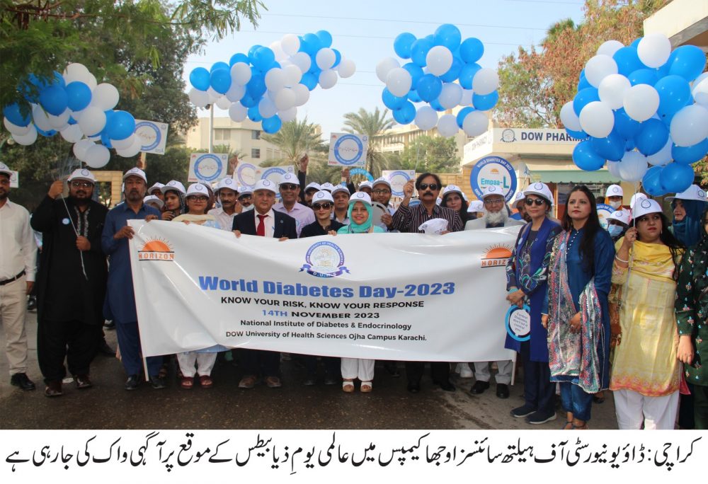 نیشنل انسٹیٹیوٹ آف ڈایا بیٹیز اینڈ انڈوکرائنولوجی (نائیڈ )اوجھا کیمپس میں آگہی سیمینار سے وائس چانسلر پروفیسر محمد سعید قریشی قریشی، این آئی سی وی ڈی کے پروفیسر سعید اے مہر، پروفیسر طارق فرمان، بریگیڈیئر (ر) شعیب احمد، ڈاکٹر نثار احمد سیال، پروفیسر زیبا حق اور پروفیسر اختر علی بلوچ نے خطاب کیا۔ پروفیسر محمد سعید قریشی نے کہا کہ پاکستان میں شوگر کے مریضوں کی بڑھتی تعداد خطرے کی گھنٹی ہے، فوری طور پر ایسے اقدامات کی ضرورت ہے جس سے شوگر کے مریضوں کی تعداد کم ہو کیونکہ ہمارے نوجوانوں کی غذائی عادات اور طرز زندگی کو صحت مندانہ قرار نہیں دیا جا سکتا۔ پروفیسر سعید اے مہر نے کہا کہ شوگر کے مریضوں کو دل کا دورہ پڑنے کا خطرہ سب سے زیادہ ہوتا ہے۔ شوگر میں مبتلا افراد کو ڈاکٹر سے معائنے کے ساتھ ساتھ غذا میں بھی احتیاط برتنی چاہیئے۔ سب سے اہم بات یہ ہے کہ شوگر کے مضر اثرات سے بچاؤ کا واحد حل احتیاط ہے۔ پروفیسر طارق فرمان نے کہا کہ دنیا میں 67 لاکھ افراد سالانہ ذیابیطس کے باعث ہلاک ہو جاتے ہیں، ہر پانچ سیکنڈ میں ایک شخص کی موت اسی مرض کی وجہ سے ہو رہی ہے۔