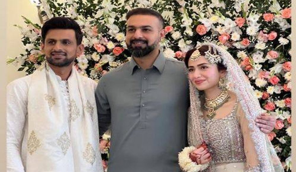تفصیلات کے مطابق گزشتہ روز شعیب ملک نے پاکستانی گلوکار عمیر جسوال کی سابقہ اہلیہ ثناء جاوید سے تیسری شادی کی تصاویر سوشل میڈیا پر جاری کر کے سب کو حیران کردیا، شادی کی تصاویر جاری ہوتے ہی سوشل میڈیا پر ہنگامہ برپا ہوگیا اور اس نوبیاہتا جوڑی کو شدید تنقید کا سامنا کرنا پڑا۔