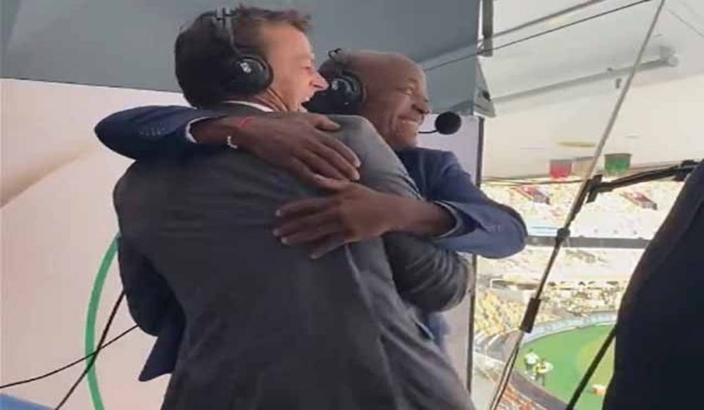 برسبین(اُمت نیوز)آسٹریلیا کی سرزمین پر 27 سال بعد ویسٹ انڈیز کی ٹیسٹ میں تاریخی فتح پر کمنٹری روم میں بیٹھے سابق آسٹریلوی اوپنر ایڈم گلکرسٹ اور معروف سابق ویسٹ انڈین بیٹر برائن لارا کے گلے ملنے کی ویڈیو سوشل میڈیا پر وائرل ہوگئی۔