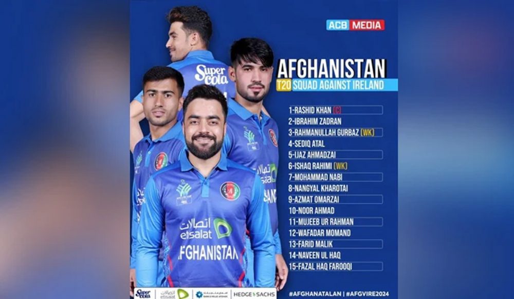 افغانستان(اُمت نیوز)افغانستان کرکٹ بورڈ نے آئرلینڈ کے خلاف ٹی ٹوئنٹی سیریز کے لیے اسکواڈ کا اعلان کردیا۔