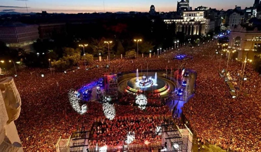 خبر رساں اداروں کے مطابق میڈرڈ کی سڑکوں پر ریکارڈ چار مرتبہ یوروپین چیمپین شپ جیتنے والی ٹیم کو دیکھ کر مداح جھوم اٹھے، مداحوں نے اپنے ہیروز کا شاندار استقبال کیا۔
