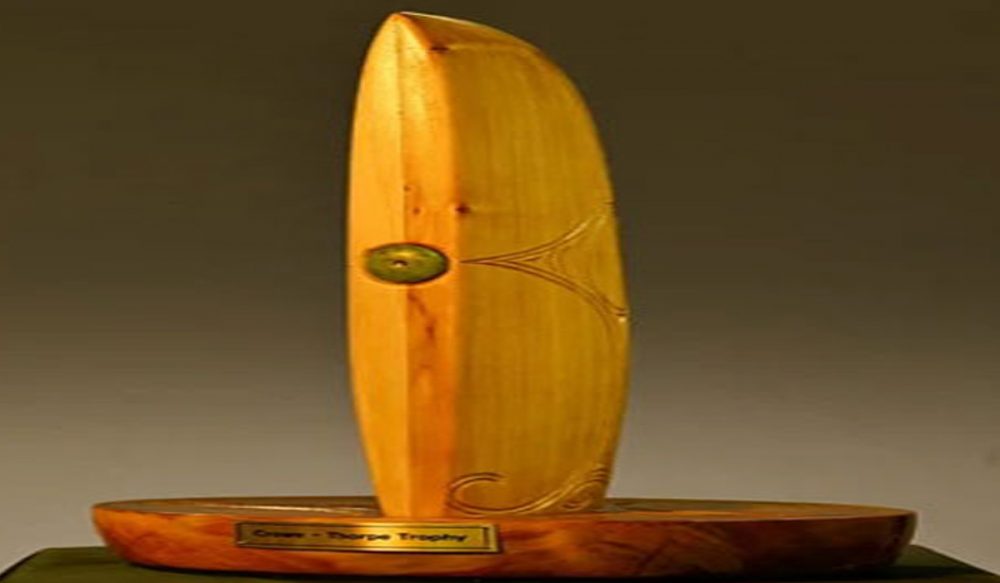 دونوں پلیئرز کی فیملی نے ٹرافی بنانے کے لیے بیٹ کا عطیہ دیا تھا، اس ٹرافی میں تھارپ کے نیوزی لینڈ کے خلاف اور مارٹن کرو کے انگلینڈ کے خلاف سنچری بنانے والے بیٹ استعمال ہوئے ہیں۔