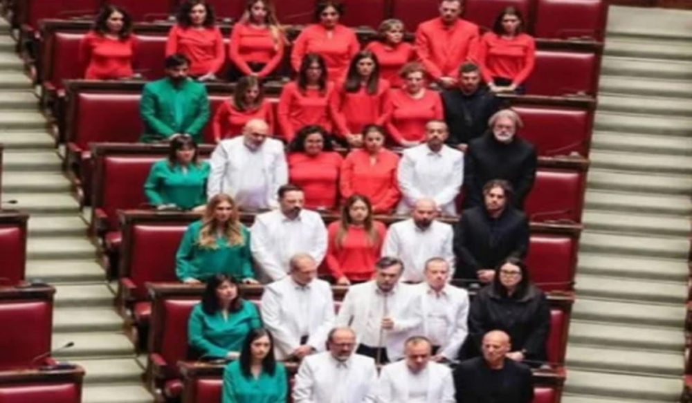 روم: اطالوی پارلیمنٹ میں فلسطینی عوام سے یکجہتی کا انوکھا اور جرات مندانہ مظاہرہ دیکھنے میں آیا، جب فائیو اسٹار موومنٹ جماعت کے اراکین نے فلسطینی پرچم کے رنگوں والے لباس پہن کر اجلاس میں شرکت کی۔