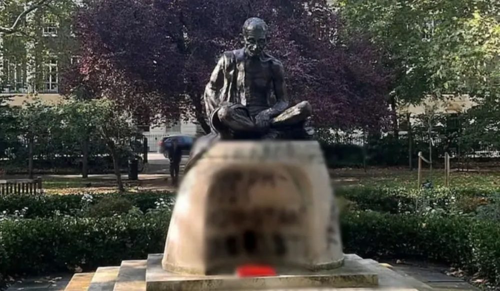 لندن،گاندھی مجسمے پر بھارت اور مودی مخالف نعرے،بھارتی ہائی کمیشن برہم
