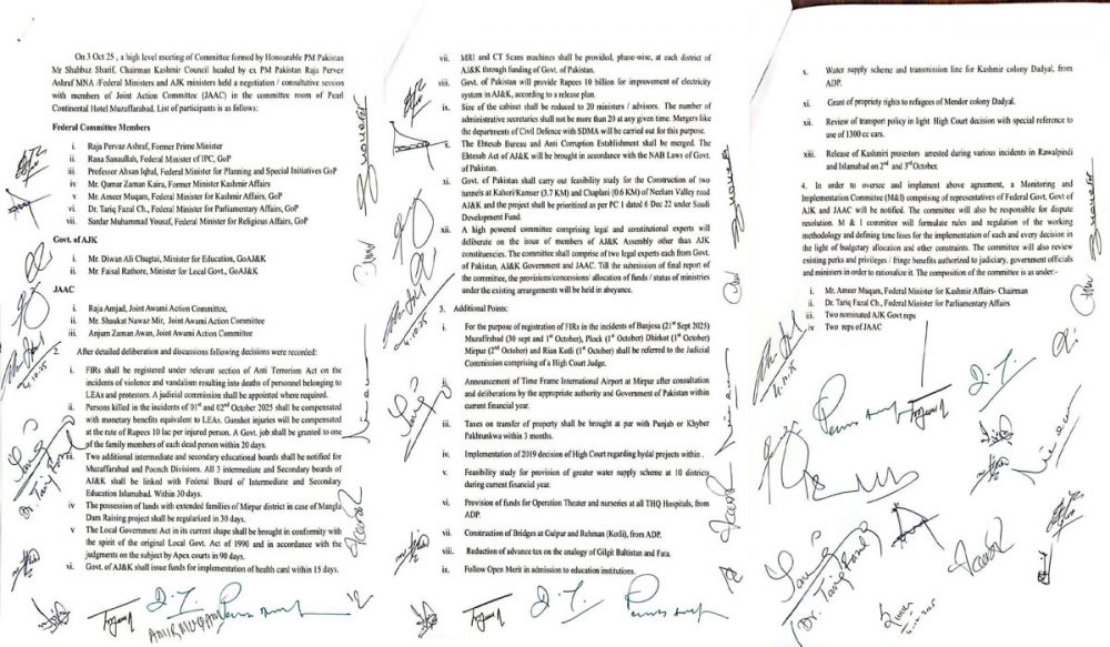 آزاد کشمیر میں طے پانے والے معاہدے کا متن سامنے اگیا
