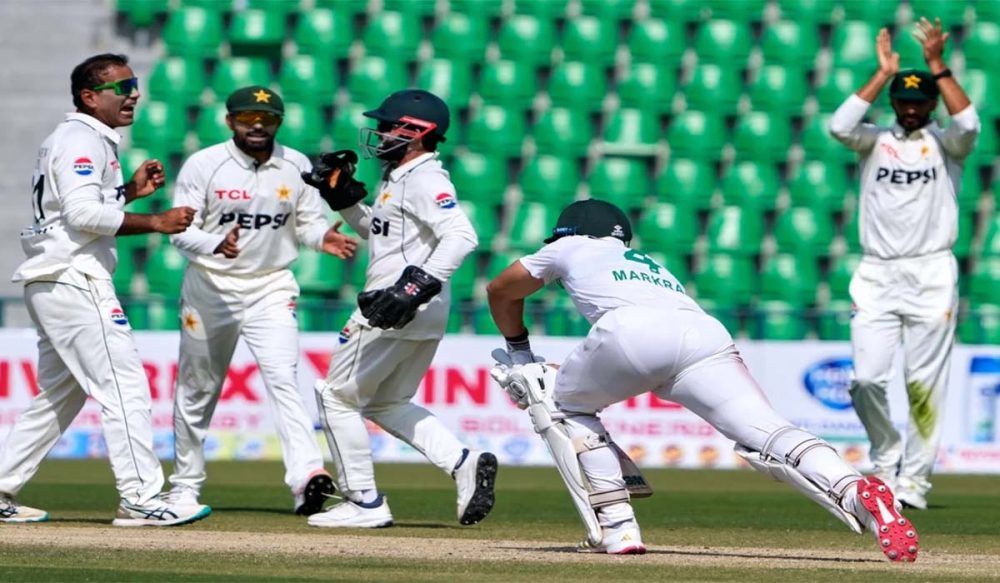قذافی اسٹیڈیم لاہور میں پاکستان اور جنوبی افریقا کے درمیان جاری پہلے ٹیسٹ کے تیسرے دن کھیل کے دوران مہمان ٹیم مشکلات کا شکار ہے۔