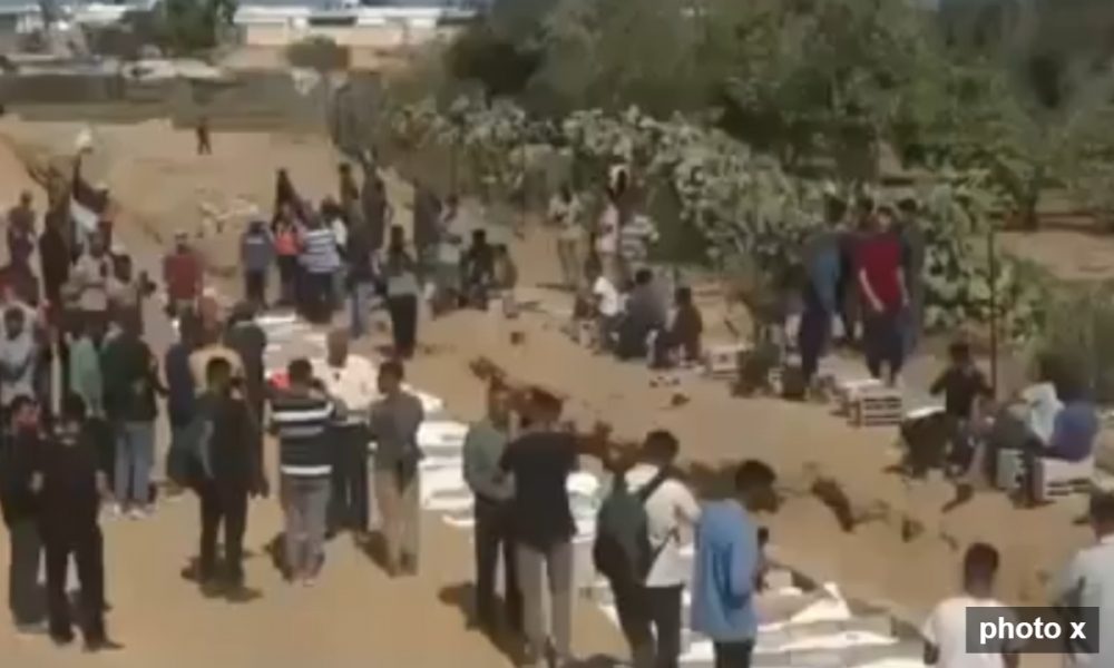 غزہ کے علاقے دیر البلاح میں 54 فلسطینی شہدا کو ایک مقامی قبرستان میں اجتماعی قبر میں دفن کر دیا گیا ہے۔