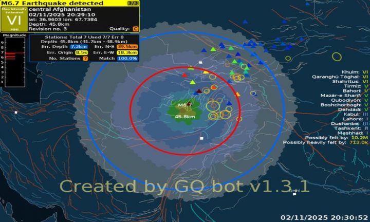 افغانستان:ہندوکش میں 6.3 شدت کا زلزلہ،7 ہلاک،150 زخمی November 3, 2025 زلزلے کی شدت 6.3 ریکارڈ کی گئی، گہرائی 28 کلومیٹر تھی، جبکہ مرکز صوبہ سمنگان کے ضلع خُلم سے تقریباً…