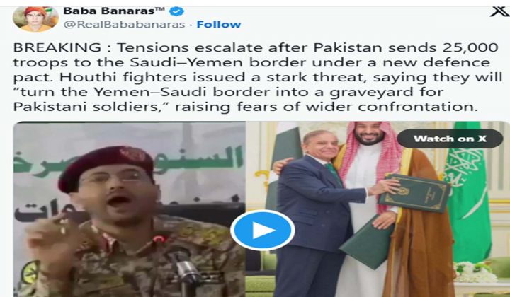 سعودی عرب دفاعی معاہدے کے بعد حوثیوں کی پاکستان کو دھمکی کا بھارتی دعویٰ جھوٹا September 20, 2025 بھارتی صارفین نے ایک پرانی ویڈیو کلپ کو بنیاد بنا کر دعویٰ کیا کہ ایک حوثی اہلکار نے پاکستان کو…