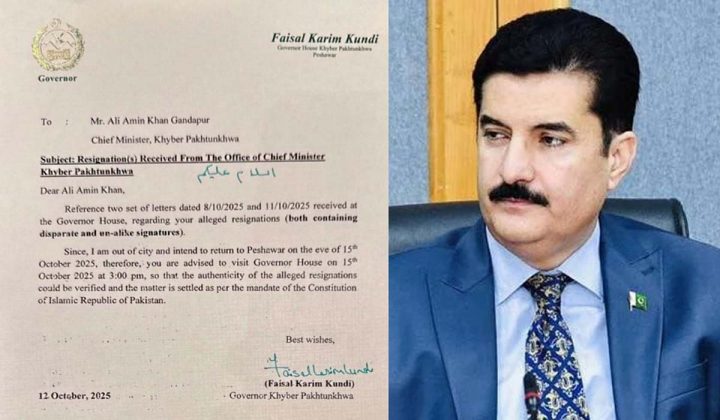 گورنر خیبرپختونخوا فیصل کریم کنڈی کے اعتراض پر گنڈا پور کا رد عمل October 13, 2025 اپنے دونوں استعفے 8 اور 11 اکتوبر کو اپنے مستند دستخط کے ساتھ جمع کرائے تھے 8 اکتوبر کا استعفیٰ،…